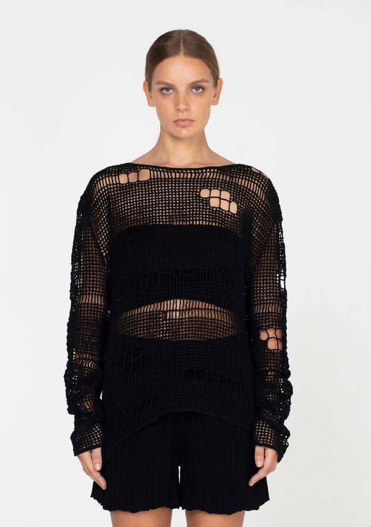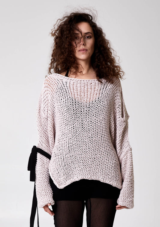 A group of soft, ample yarns knitted into large voluminous garments enveloping the body in a cozy cocoon. The garments often feature prominent sculptural elements like cables, braids, and gathering to create a unique and personal silhouette accentuating or concealing the body.